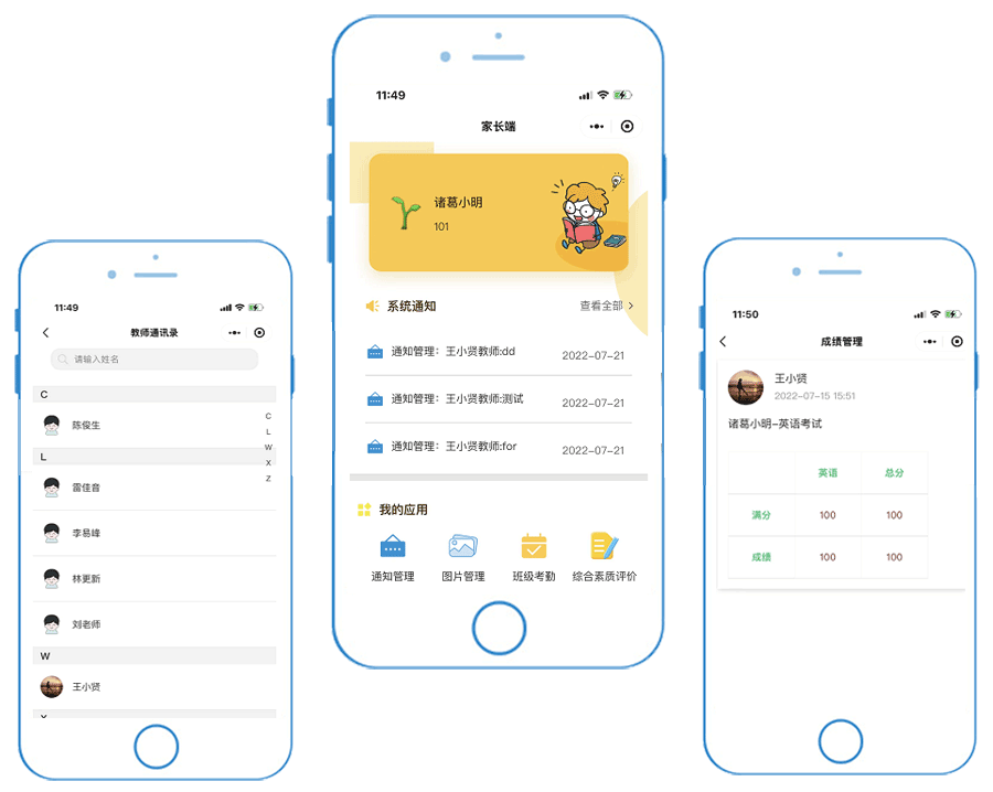 實(shí)現(xiàn)數(shù)字化辦公,對外向?qū)W生家長提供各種服務(wù),如:消息通知、請假管理,校園活動,學(xué)生動態(tài),教師通訊錄,學(xué)生定位等各種服務(wù)。對內(nèi)向教師提供各類服務(wù),如:班級管理,考勤管理,請假管理,活動管理,課堂點(diǎn)名,家長會管理,教師課程等等各種服務(wù)